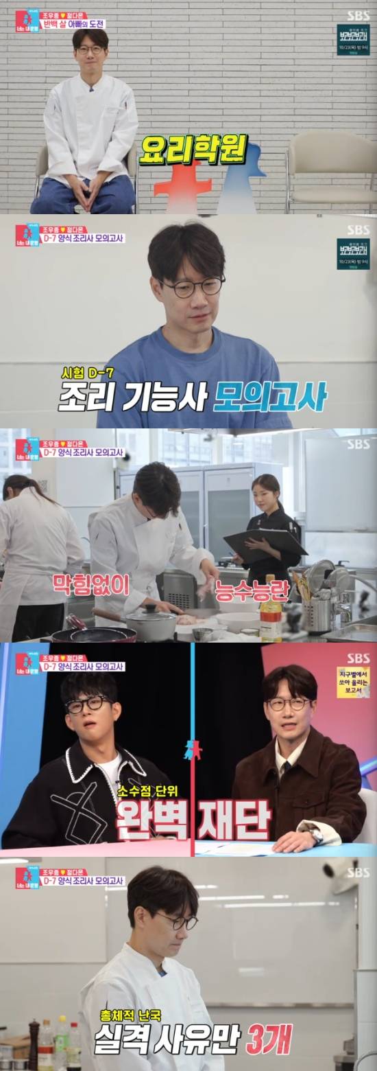 요리학원 수업 시작 25분 전에 미리 와서 요리 연습을 하던 조우종은 "20년 전에 봤던 언론고시보다 더 힘들다. 보통 시험이 아니다"라면서 요리에 열중했다.