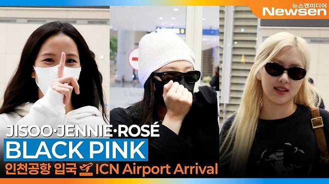 블랙핑크 ‘지수·제니·로제’, 전세기 타고 한국까지 가고 온~공연의 흥! (입국)[뉴스엔TV]