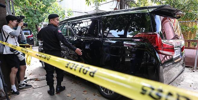 | ‘피살 대학생’ 부검… 화장후 오늘 국내 송환 20일(현지 시간) 캄보디아 프놈펜 턱틀라 사원에서 국립과학수사연구원 부검의 등을 태운 차량이 고문 끝에 숨진 것으로 알려진 대학생 박모 씨(22)의 시신 부검을 위해 안치실로 들어서고 있다. 당국은 이날 박 씨의 시신을 화장했고 그 유해를 21일 국내로 송환한다. 프놈펜=뉴스1 |