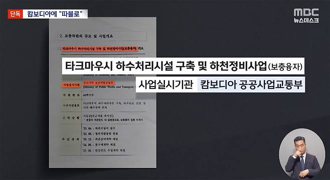 지난 2023년, 윤석열 정부는 캄보디아 메콩강 하류 도시 '타크마우'의 하수처리시설 사업에 거액을 지원하기로 합니다. 지원금은 총 1억 2천4백만 달러, 현재 환율로 1천7백억 원에 달합니다. 그런데 이 사업은 이미 박근혜 정부 당시인 지난 2016년 추진된 적이 있었습니다. 수출입은행은 당시 6천4백만 달러의 융자를 하기로 결정했지만, 캄보디아 측이 설계 변경을 요구하며 비용이 늘어났고, 2년 만에 사업이 중단됐습니다.