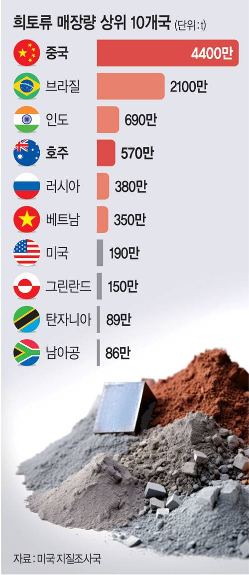 트럼프 대통령이 희토류 매장량 세계 4위인 호주와 이 같은 협력에 나선 것은 중국이 방위·첨단 산업에 필수적인 희토류 수출을 대미 견제 수단으로 활용하자 공급망 다변화를 통해 대응하겠다는 의지로 풀이된다.