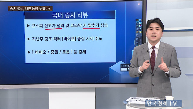 이날 나 대표는 “지난주부터 강조드렸던 제약·바이오의 화려한 비상이 이뤄진 날”이라며 “코스피가 신고가 랠리를 이어가는 가운데 코스닥 역시 ‘키 맞추기 상승’이 본격적으로 나타나고 있다”고 평가했다.