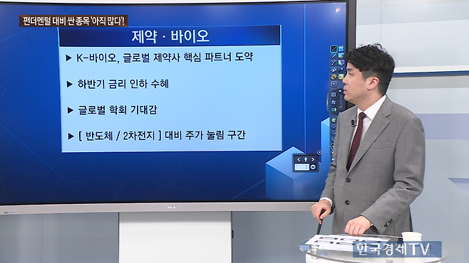그는 코스피가 삼성전자와 SK하이닉스를 중심으로 고점을 높이는 동안 상대적으로 부진했던 코스닥이 제약·바이오 섹터를 축으로 반등했다고 분석했다. 특히 최근 시장은 반도체·2차전지·로봇·증권 등으로 순환매가 이어지고 있으며 이날은 제약·바이오가 지수 상승을 주도한 점에 주목해야 한다고 덧붙였다.