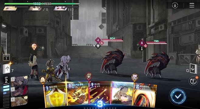 전투는 이용자의 턴에 보유한 카드덱에서 무작위로 등장하는 카드를 '드래그 & 드롭'하는 방식으로 사용해 진행된다.