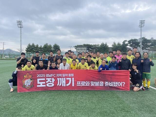 경남FC가 지역 조기축구팀과의 교류전을 통해 그라운드 안팎에서 소통하는 시간을 가졌다.