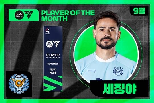 한국프로축구연맹은 "대구FC 세징야가 2025년 9월 'EA SPORTS 이달의선수상'을 수상했다"고 21일 밝혔다.