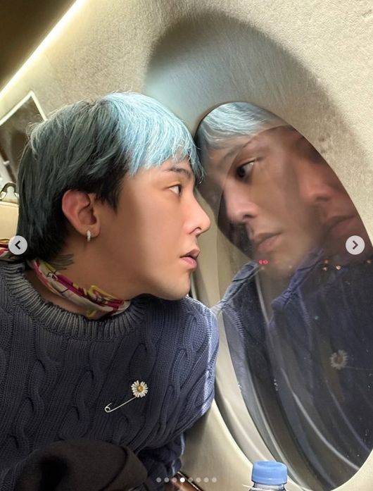 공개된 사진에는 전세기를 타고 이동 중인 지드래곤의 모습이 담겨 있었다.