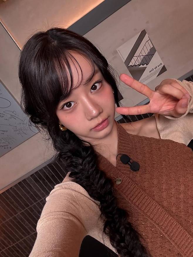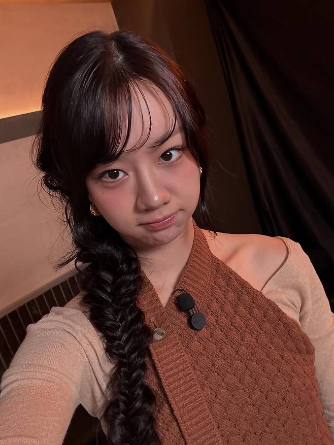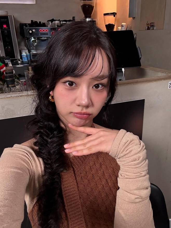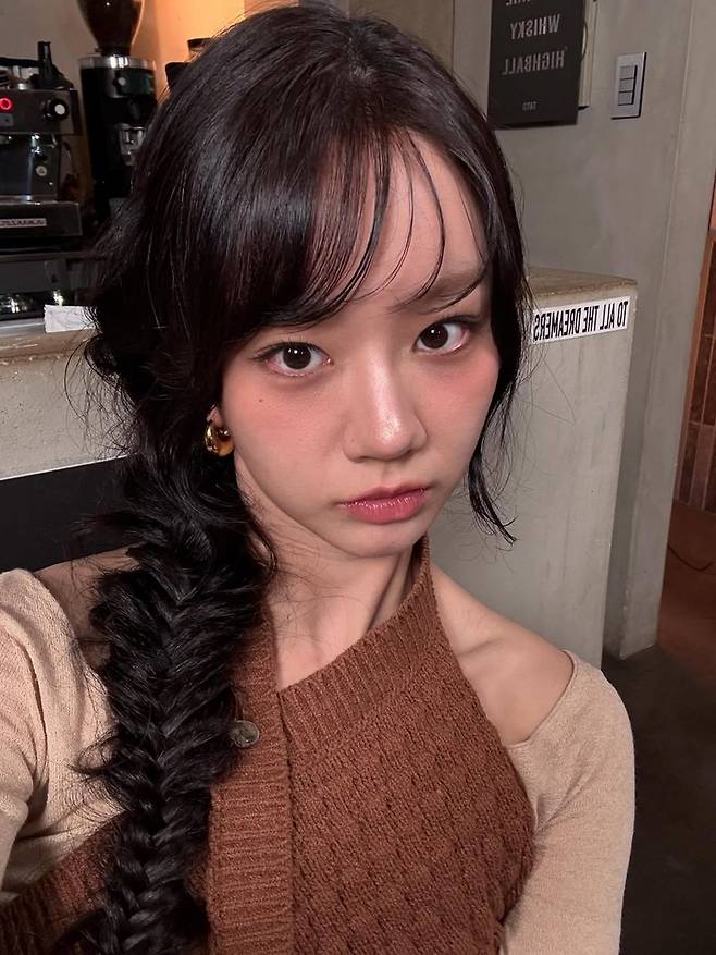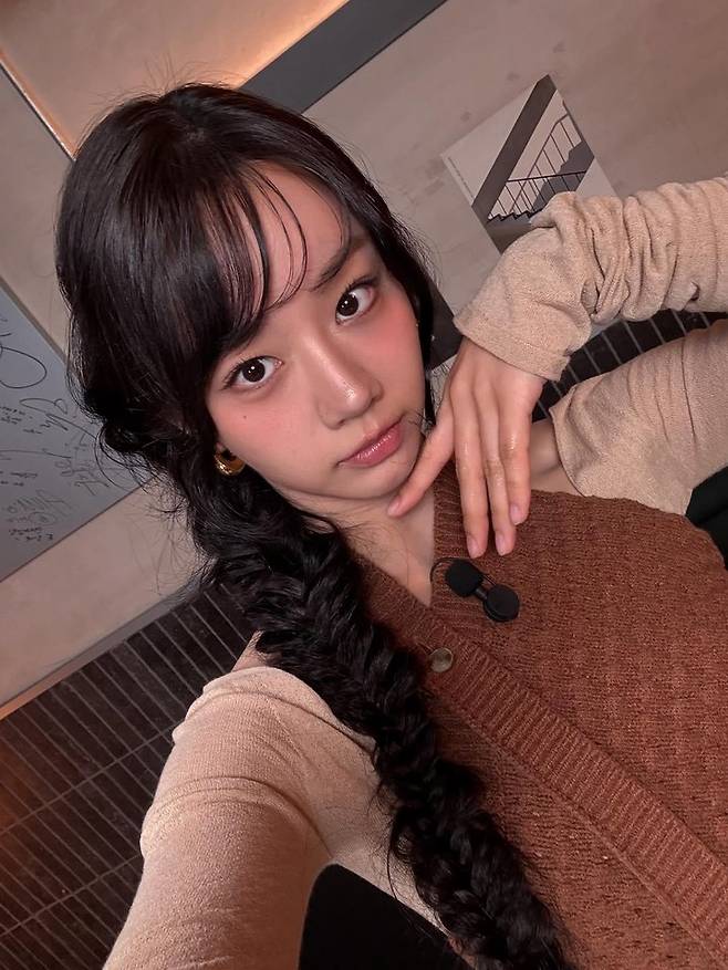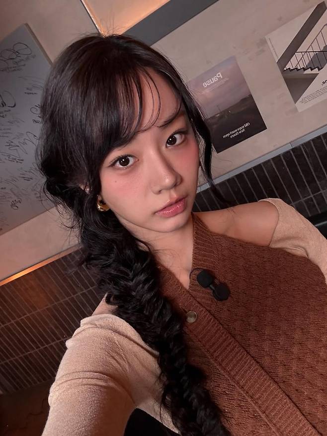 길게 땋은 피쉬테일 브레이드 헤어와 자연스러운 살구빛 메이크업이 청초한 분위기를 더했다. 특히 살짝 미소 짓는 표정과 부드러운 눈빛이 혜리 특유의 사랑스러운 매력을 한껏 드러냈다.