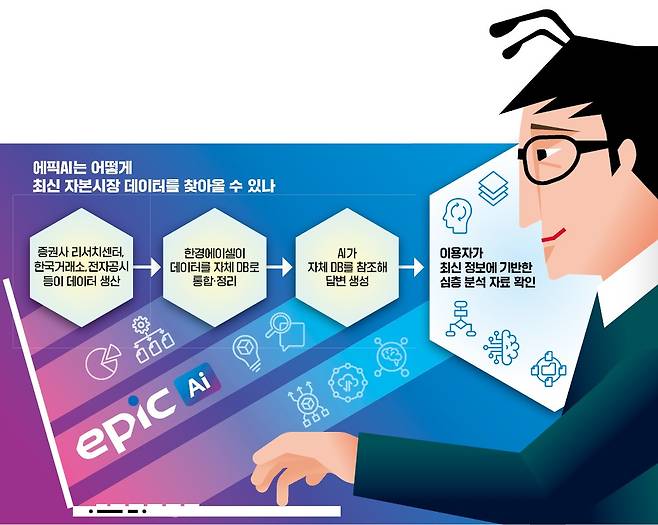 21일 한경에이셀(Aicel)에 따르면 국내 첫 AI 투자정보 플랫폼 에픽AI 구독자가 출시 하루 만에 1100명을 돌파했다. 에픽AI는 대화형 AI 코파일럿(부조종사)을 통해 투자자가 직접 질문을 던지고 맞춤형 조언을 받을 수 있는 서비스다. AI 모델이 국내 주요 리서치기관 보고서와 상장 기업 사업보고서, 한국거래소의 가격 정보 등 통합 데이터베이스(DB)를 기반으로 답변을 생성한다. 이 때문에 챗GPT, 제미나이 등 범용 서비스와 비교해 자본시장과 관련한 더욱 깊이 있는 분석을 받아볼 수 있다.