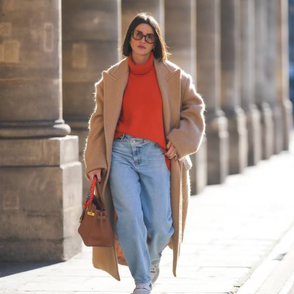 맘진과 스니커즈 조합은 자칫하면 밋밋해질 수 있습니다. 그럴 땐 미니멀한 로우탑 스니커즈와 깔끔한 니트를 선택하세요. 오버사이즈지만 잘 재단된 아우터를 더하면 완벽합니다. 조금 더 개성을 원한다면 키치한 가방 키링으로 포인트를 주세요.