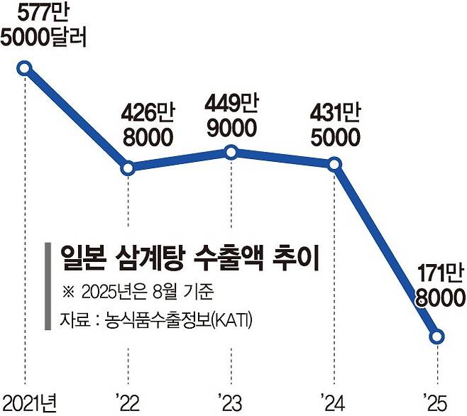 日서 식어가는 삼계탕 인기… 수출 1년새 26% 줄어