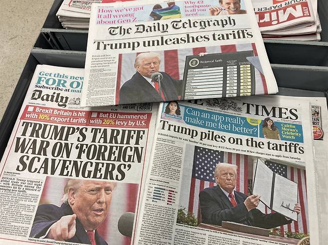 | ▲ 트럼프의 관세 정책을 1면 기사로 다룬 영국 신문들. 관세를 피하기 위해 기업들이 대거 생산기반을 미국으로 이전할 경우 한국내 일자리와 산업 경쟁력에 미치는 충격이 클 것으로 보인다. |
