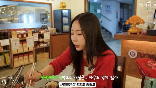21일 '원마이크' 채널에는 "연예계 은퇴 후 무당 된 지 2년.. 식당에서 만난 미녀 개그우먼"이라는 제목의 영상이 업로드 됐다.