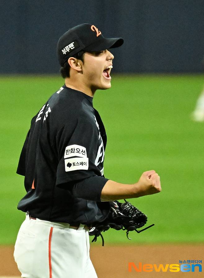 ‘문동주 4이닝 완벽투+노시환 역전 결승포’ 한화, PO 3차전 승리..한국시리즈 보인다