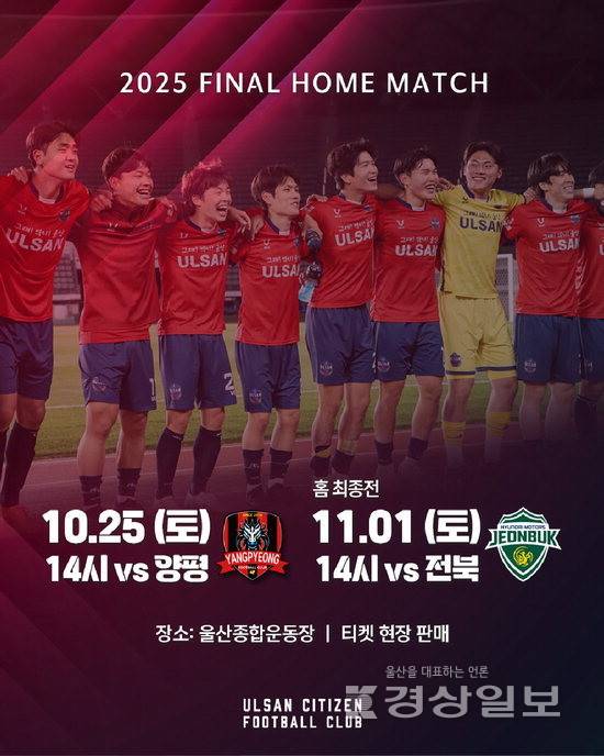 울산시민축구단은 오는 25일 양평, 다음 달 1일 전북을 상대로 오후 2시 홈 최종전을 가진다.