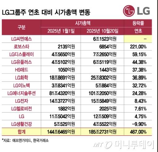 LG그룹 주요 계열사의 최근 주가상승이 시총 증가로 이어졌다.