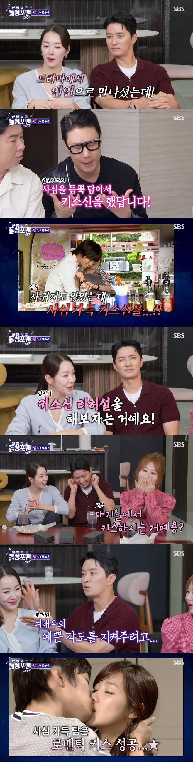 이에 박세미는 "그럼 대기실에서 키스하는 거냐?"라며 놀랐다. 그러자 인교진은 "그때 촬영이 세트였다. 세트는 방향이 중요해서 여배우니까 얼굴이 예쁘게 나오는 각도를 만들어주기 위해서 리허설을 한 거다"라고 해명했다.