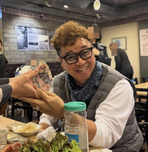 공개된 사진에서 강원래는 한 한우집에서 교육학 박사 취득 기념 파티를 열었다.