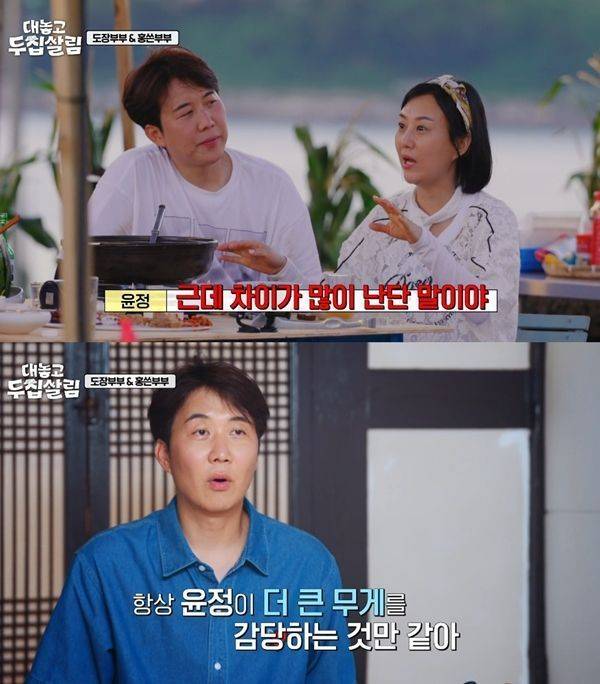 그런데 식사 중, 장윤정은 "경완 씨랑 나랑 살 때 처음엔 되게 힘들었다"라고 운을 뗐다. 도경완은 "'문화재 보호청장이 된 거 같다'고 했다. 사람들이 나를 보면 첫마디가 '윤정 씨 잘 지내지?' '윤정 씨 잘해줘' 그런다. 윤정 씨에게만 잘해주면 되는 건가? 나에 대한 관심은 전혀 없었다"라고 토로했다. 장윤정도 "타이틀이 '장윤정 남편' 이렇게 되니까 스트레스가 많았던 거다. 그 스트레스는 내가 어찌 할 수 있는 게 아니지 않나. 그래서 짜증을 내기도 했다"라며 첨언했다.
