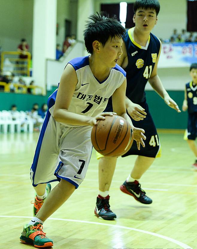 “그날 운동장에서 뛰는 걸 보시고 코치님이 교무실로 불러주셨어요. 농구해볼 생각 없냐고 하셨는데, 그땐 농구를 아예 몰랐거든요. 그날 엄마한테 학교에서 전화가 왔더라고요. 방학 때 놀러 와서 해보라 하셔서 갔는데, 너무 재밌는 거예요. 키가 185cm였던 6학년 형 앞에서 슛페이크하고 중거리 슛을 연속으로 넣었는데 그 순간 ‘아, 난 이거다’ 싶었어요. 그게 제 첫 농구 기억이에요.”