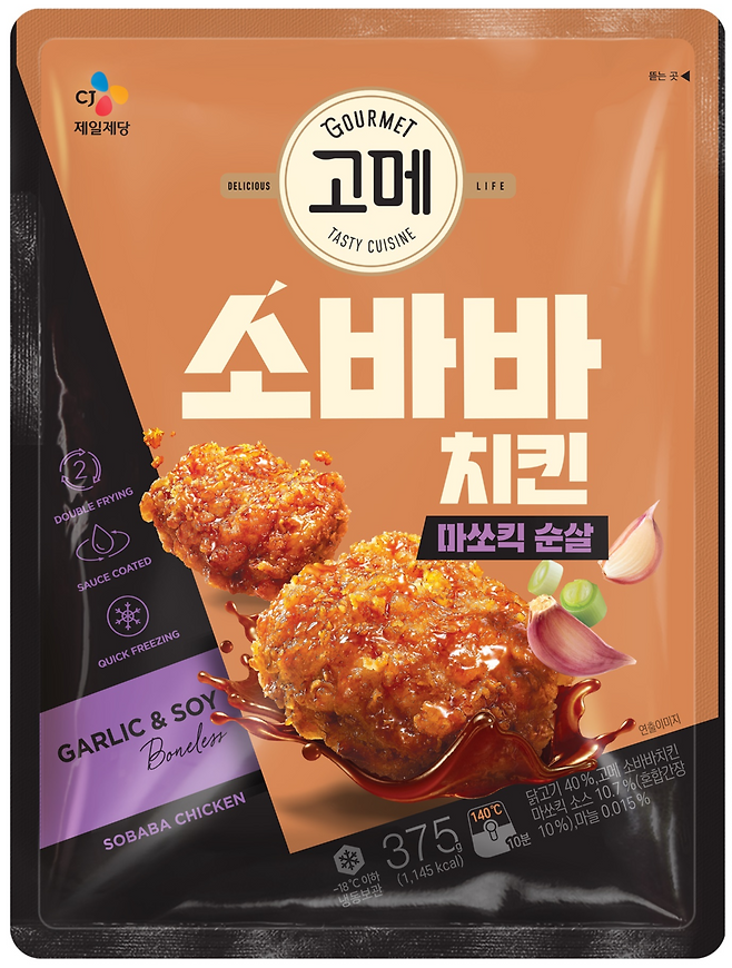 '고메 소바바치킨'은 기름에 두 번 튀겨낸 닭고기에 CJ제일제당이 독자개발한 '소스코팅 공법'을 적용한 제품이다.