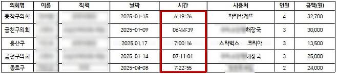 | ▲ 이른 시간대 업무추진비 사용 내역 BEST 5 |