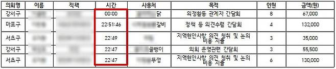 | ▲ 늦은 시간대 업무추진비 사용 내역 BEST 5 |