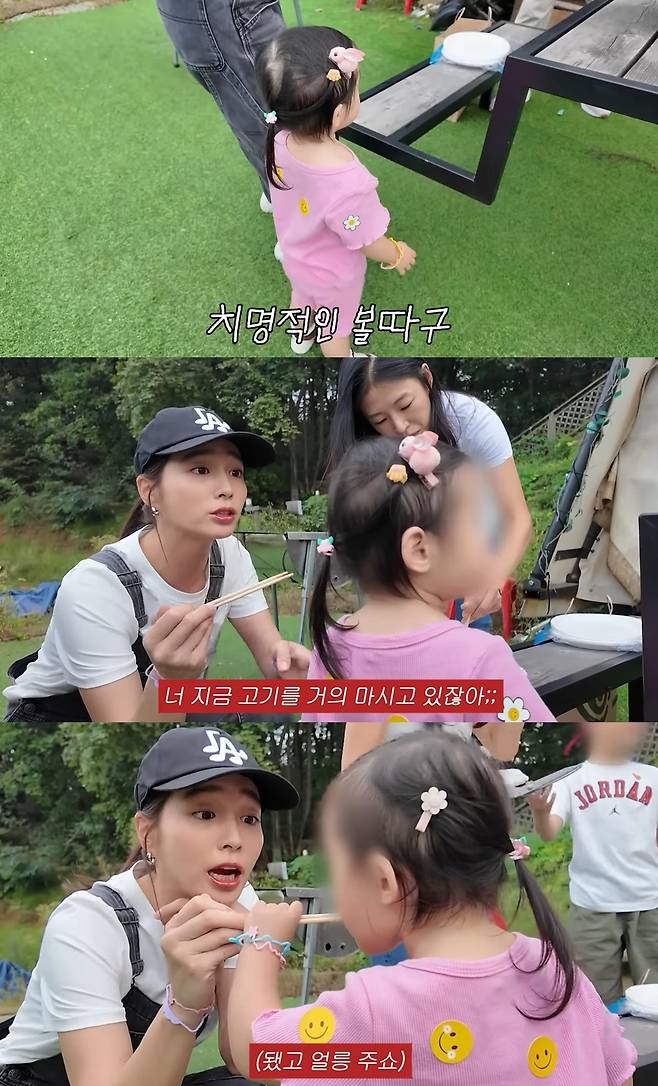 이어 이민정은 딸의 인생 첫 구운 고기 시식 장면을 담았다. 맛있어하는 딸에 이민정은 "너무 맛있어? 천천히 먹어라. 지금 고기를 거의 마시고 있다. 이렇게 맛있을 일이냐"라며 꿀 떨어지는 눈빛으로 애정을 드러냈다.