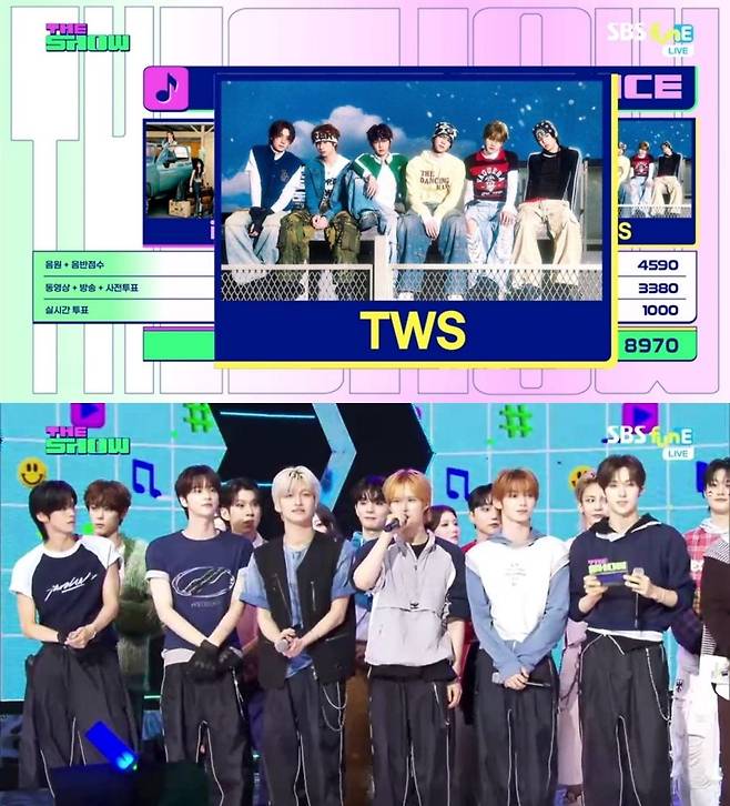 그룹 TWS(투어스)가 신곡으로 음악방송 첫 1위에 오르며 흥행 가속 페달을 밟았다.