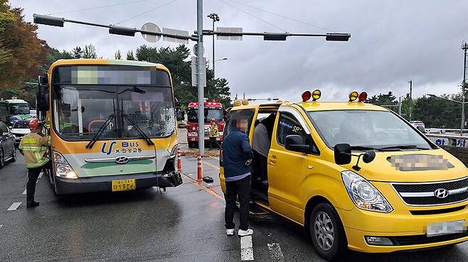 멈춰 있던 유치원 차에 시내버스 '쾅'…어린이 8명 등 11명 부상