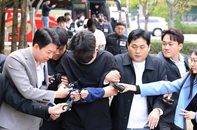 [20일 오후 충남경찰청에서 사기 혐의로 수사받는 캄보디아 송환 피의자들이 충남 홍성 대전지법 홍성지원에서 구속 전 피의자심문(영장실질심사)을 받기 위해 법원에 들어서고 있다. 이날 홍성지원에서는 충남경찰청에서 사기 혐의로 수사받는 캄보디아 송환자 45명의 영장실질심사가 열리고 있다. (사진=연합뉴스)]