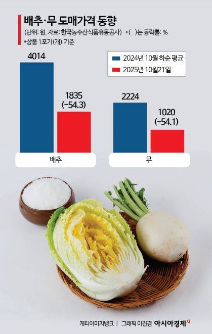 올해는 김치 담가볼까…배추·무 가격 50% 하락, 김장 수요↑