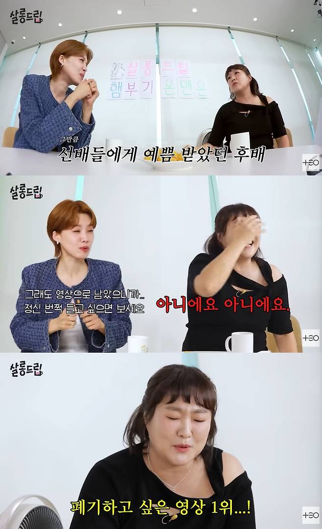 장도연은 "그래도 영상으로 남았으니까"라고 답했고, 이수지는 질색하며 "아니다. 진짜 못 보겠다. 폐기하고 싶은 영상 1위다"라고 단호히 이야기해 웃음을 자아냈다.