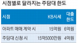주택담보대출(주담대) 한도를 깎는 고가 아파트 기준이 '대출 신청일'에 정해지는데, 보통 아파트 매매 계약 시점과 대출 신청일 간 시차로 인해 대출한도가 달라질 수 있어서다.