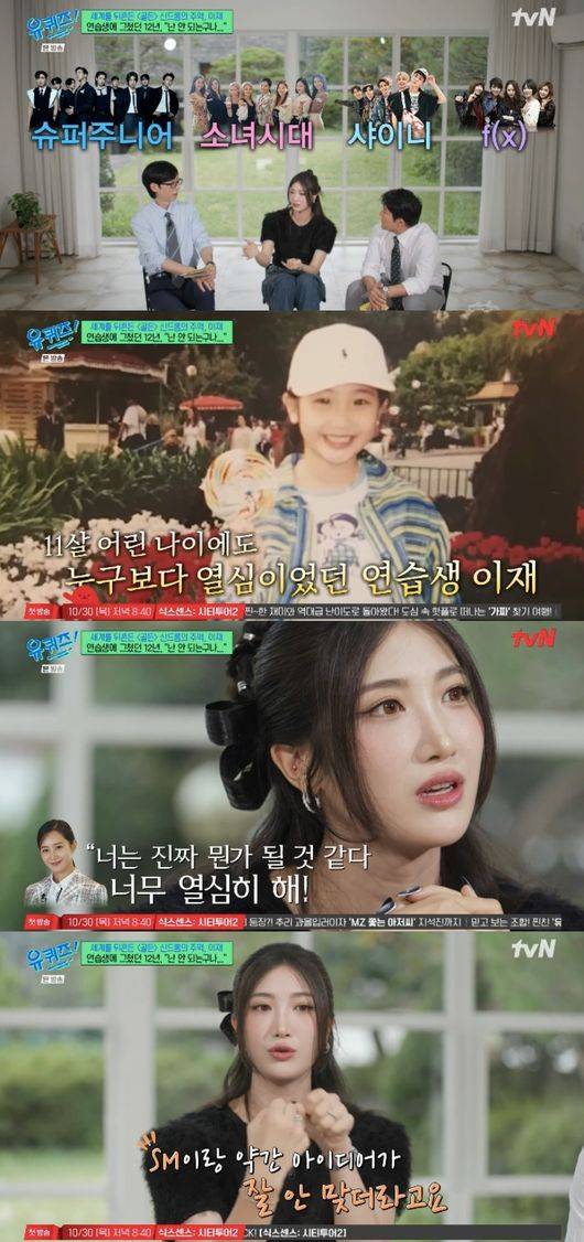 11살에 연습생 생활을 시작한 이재는 “새벽 7시에 제일 먼저 연습실에 나와서 마지막으로 밤 11시까지 있었다. 진짜 열심히 했다. 저도 지금 이렇게 뒤를 돌이켜 보면 확실히 어린 나이에 그렇게 열심히 한 게 신기했다”라며 떠올렸다.