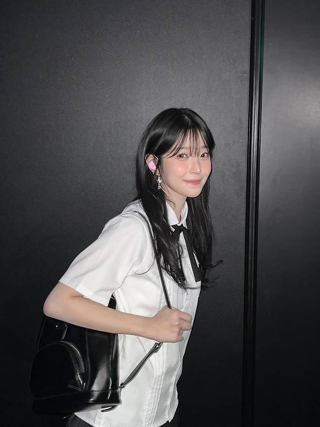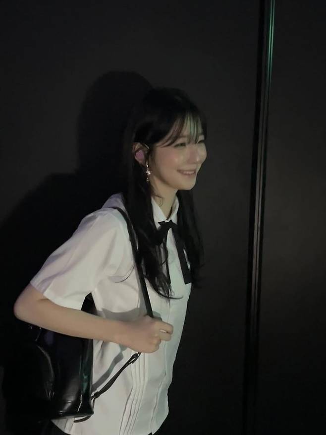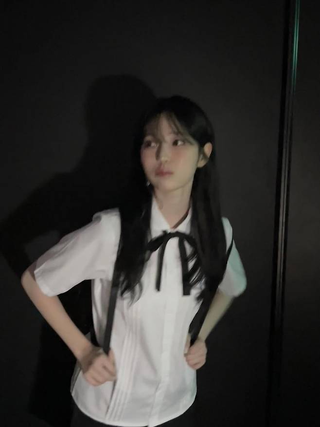 공개된 사진 속 백지헌은 흰색 셔츠에 검은 리본 타이를 매치한 교복 스타일로 청순한 매력을 한껏 드러냈다.