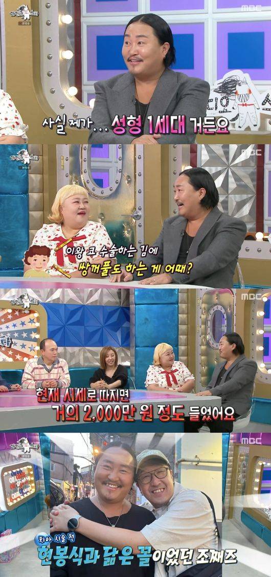 그렇게 코와 쌍커풀 수술을 함께 했다는 조째즈는 "눈은 두 번 집었다. 성형 한번 맛 들이면 빠져나올수없다. 한 번 더 하고 살도 찌면서 자연스럽게 제 것이 됐다"라고 너스레를 떨었다.