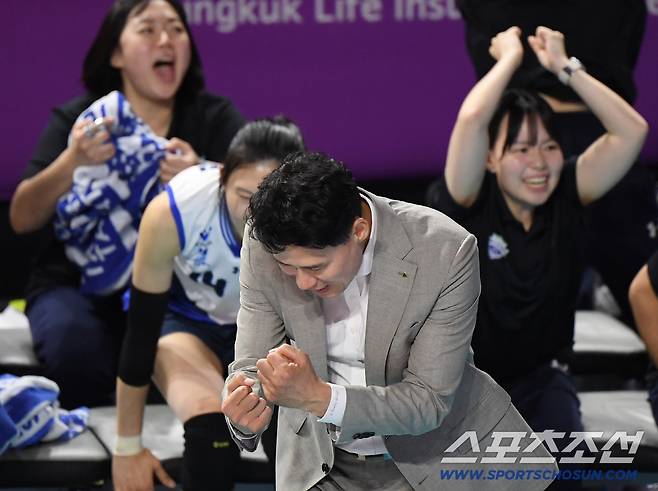 [인천=스포츠조선 정재근 기자] '점잖은 신사' 강성형 감독이 두 주먹을 불끈 쥐며 포효했다. 반면, 친정팀과 첫 대결을 치른 흥국생명 이다현은 팬들 앞에서 끝내 웃지 못했다.