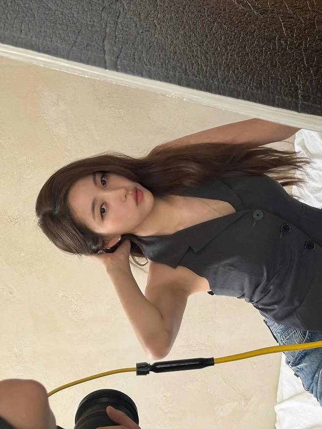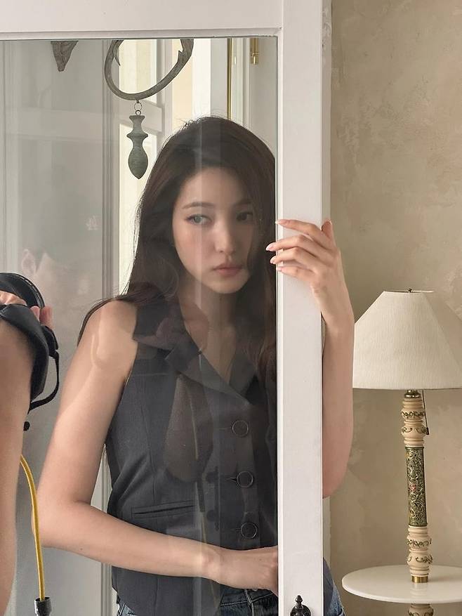 또 다른 컷에서는 버튼 디테일이 돋보이는 베스트와 데님을 매치한 모던한 스타일링으로 도회적인 매력을 드러냈다.