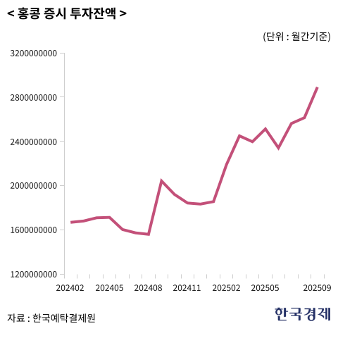 23일 한국예탁결제원에 따르면 이달(10월 초~21일) 국내 투자자들은 홍콩 주식을 1601만7869달러어치를 순매수했다. 올해 딥시크 효과로 2월부터 5월까지 순매수를 보이던 투자자들은 지난 6월부터 9월까지 순매도에 나섰다. 이들이 넉 달간 홍콩 주식을 팔아치우는 사이 SMIC(96.18%), 알리바바(58.04%), 텐센트(33.08%) 등은 강세를 나타냈다. 대부분 이들 주식은 이달 초 연고점 수준으로 뛰었다. 미국의 금리인하와 AI 성장 기대감 등이 맞물리면서 투자 자금이 급격히 유입된 결과다.