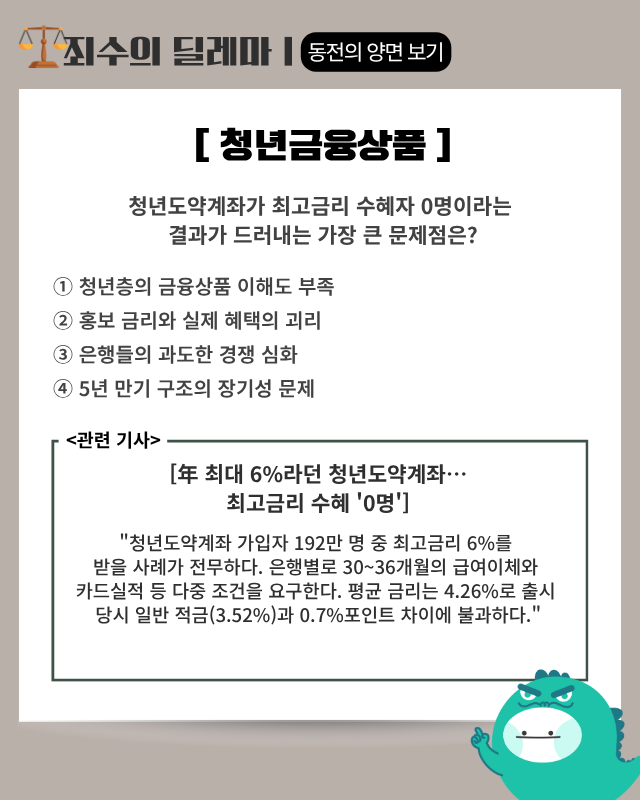 ▶기사 바로가기: 年 최대 6%라던 청년도약계좌···최고금리 수혜 ‘0명’