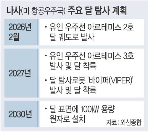 또 나사는 중국의 달 원전 건설 계획에 맞서 당초 계획됐던 2035년보다 5년 앞당긴 2030년까지 달에서 최소 100㎾ 용량의 원자로를 설치한다는 목표를 제시했다. 해당 용량은 약 80가구에 전력을 공급할 수 있는 규모다. 해당 계획을 공개한 숀 더피 미 교통부 장관 겸 나사 국장대행은 “미래의 달 경제를 지원하는 한편 화성에서 에너지를 생산하고, 우주에서 국가 안보를 강화할 수 있는 이 중요한 기술을 제대로 발전시키려면 나사가 신속하게 움직이는 것이 필수적”이라고 강조했다. 나사는 앞으로 두 달 안에 관련 기업들의 의견을 수렴할 계획이다.