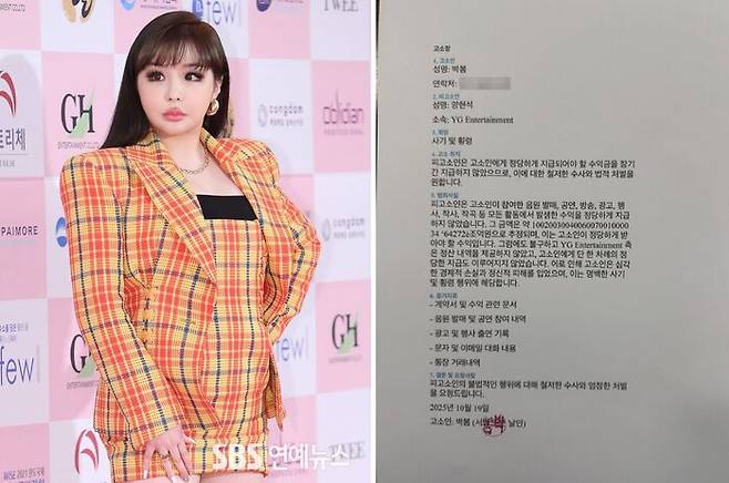 [SBS연예뉴스 ㅣ 강경윤 기자] 그룹 2NE1 출신 가수 박봄이 자신의 소셜 미디어를 통해 양현석 YG 엔터테인먼트 총괄 프로듀서를 상대로 한 고소장을 공개하며 파문을 일으키고 있다. 그러나 소속사 측은 해당 고소가 실제로 접수된 적이 없으며 박봄은 현재 치료에 전념 중이라고 해명했다.