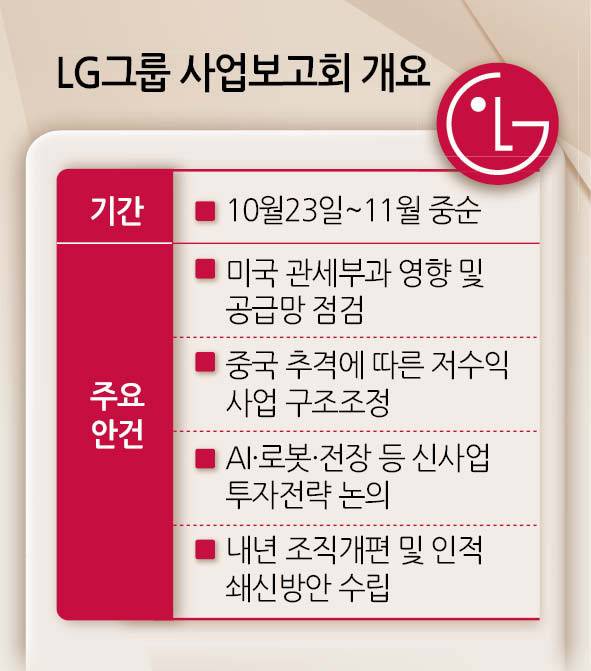 LG그룹이 올해 사업 성과를 점검하고 내년 사업계획을 수립하기 위한 사업 보고회에 돌입했다. 이번 사업 보고회에서 나온 내용을 바탕으로 11월 중순 조직 개편과 임원 인사를 단행할 전망이다.