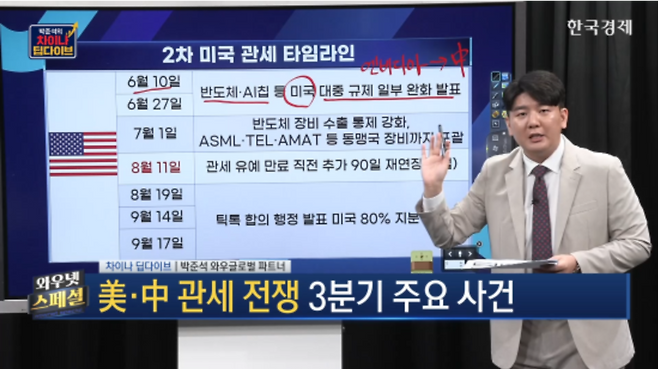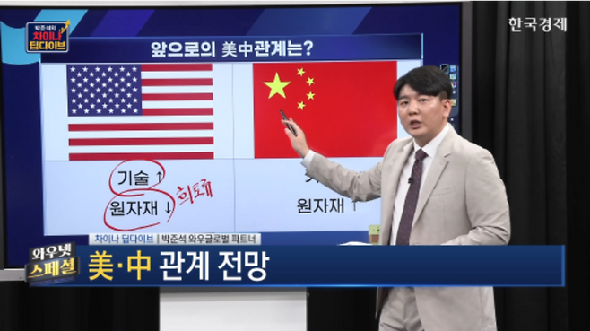 한국경제TV '와우넷 스페셜'에 출연한 박준석 전문가(와우글로벌 파트너)는 "미국과 중국의 관세전쟁이 단순한 무역 분쟁을 넘어 기술·자원·에너지 분야로 확대되고 있다"며 "AI, 반도체, 희토류 등 핵심 산업을 중심으로 글로벌 투자 환경이 빠르게 재편되고 있다"고 말했다.