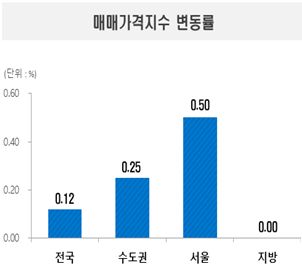 한국부동산원이 23일 발표한 10월 셋째주(20일 기준) 전국 주간 아파트 가격 동향 조사 결과 서울 아파트값은 한 주간 0.5% 오른 것으로 나타났다. 추석 연휴를 포함한 2주 누계 상승률(0.54%)에 육박하는 수치로, 2012년 5월 한국부동산원이 해당 조사를 시작한 이래 가장 높은 주간 상승률이다.