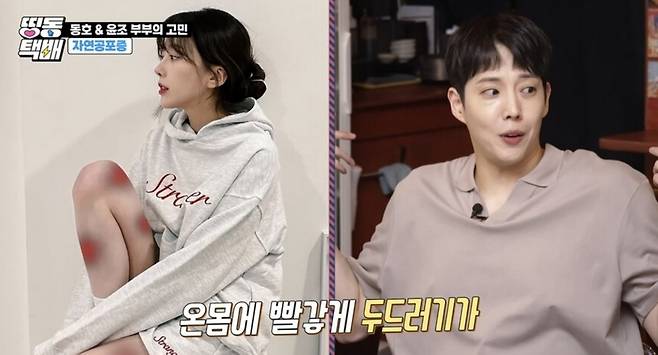 이어 "소리만 듣고도 온몸에 빨갛게 두드러기가 날 정도"라며 아내 윤조가 겪고 있는 심각한 공포증을 고백해 모두를 충격에 빠지게 한다.