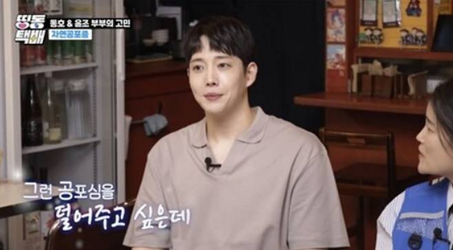 배우 김동호가 아이돌 출신 아내 윤조가 겪는 공포증을 고백한다.