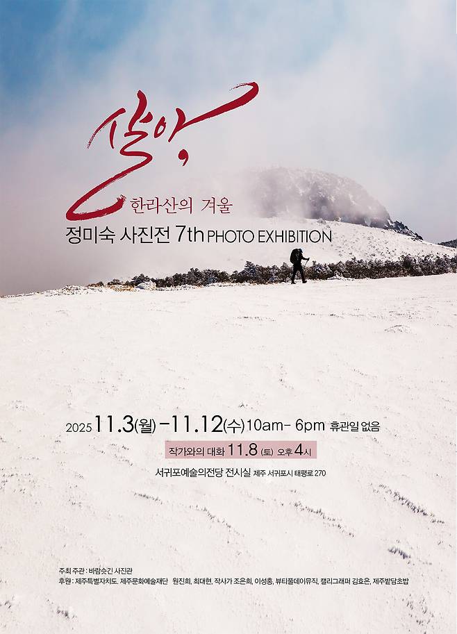 오는 11월 3일부터 12일까지 서귀포 예술의전당 전시실에서 열리는 이번 전시는 제주의 상징이자 제주인의 삶을 품어온 한라산의 겨울을 주제로 한다.