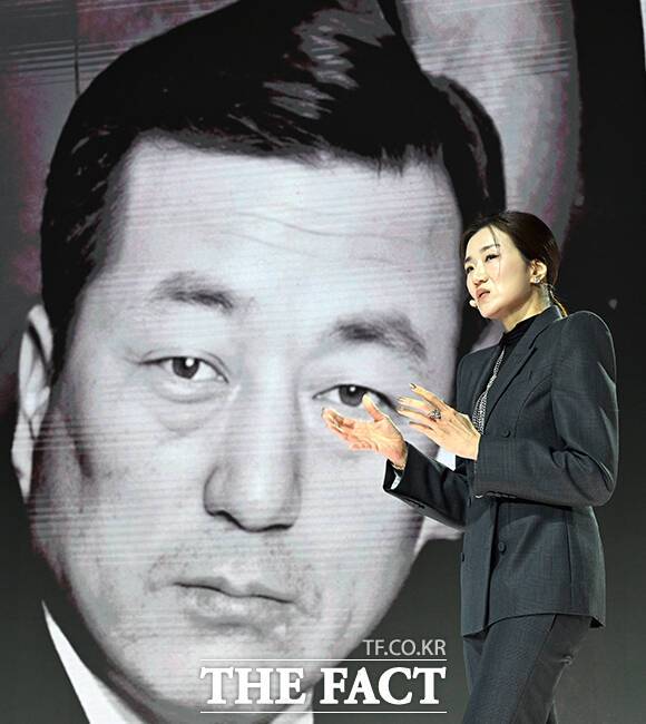 [더팩트ㅣ임영무 기자] 조현민 한진 사장이 23일 오후 서울 용산구 그랜드 하얏트 서울 그랜드볼룸에서 열린 한진그룹 80주년 기념행사에 참석해 미래전략 및 NEW CI를 발표하고 있다.